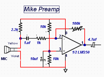 The circuit below is a complete circuit for use as a powerful microphone amplifier with a gain of up to 4000.