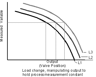 When the load changes, either the process value changes or the valve position must be changed to compensate for the load change.