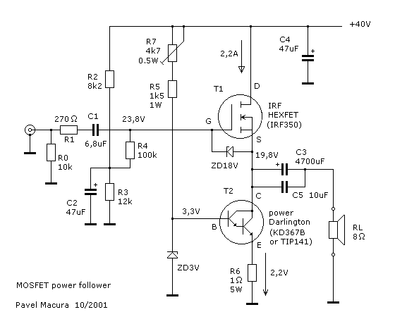 MOSFET  POWER  FOLLOWER cesky  (in Czech)