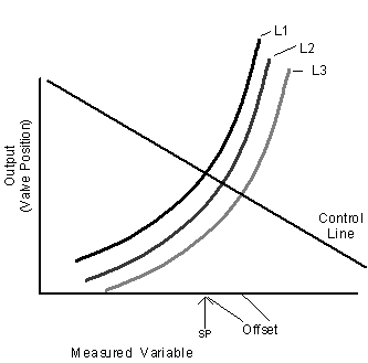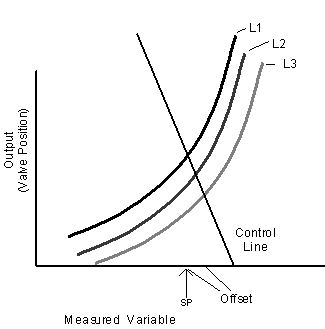 Proportional only control produces an offset. Only the adjustment of the manual reset removes the offset.