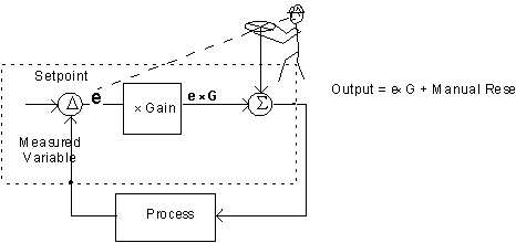 With proportional only control, the operator "resets" the controller (to remove offset) by adjusting the manual reset: