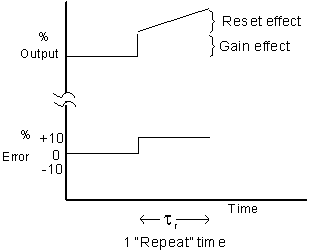 Some control vendors measure reset by repeat time in minutes. This is the time it takes the reset (or integral) element to repeat the action of the proportional element.